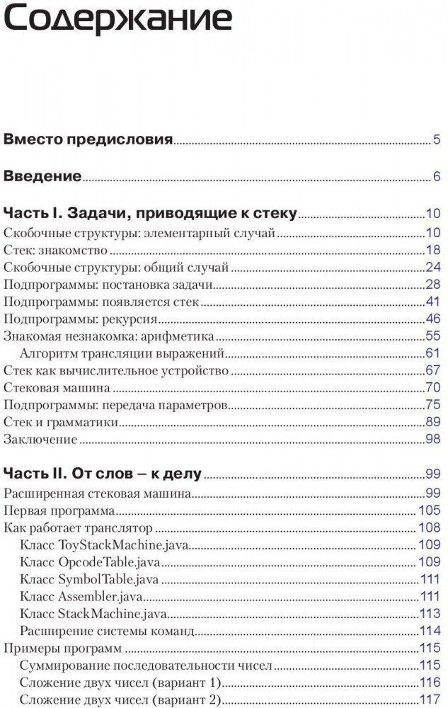 В книге описываются скобочные структуры, подпрограммы (в том числе рекурсивные), передача параметров, разбор и вычисление выражений, распознавание последовательностей символов. Рассмотрено описание устройства и реализации простой, но достаточно мощной стековой машины; приведены многочисленные примеры программ, а также список задач, в том числе нетривиальных. Книга предназначена прежде всего пытливым старшеклассникам, студентам вузов, а также тем, кто увлекается программированием. |