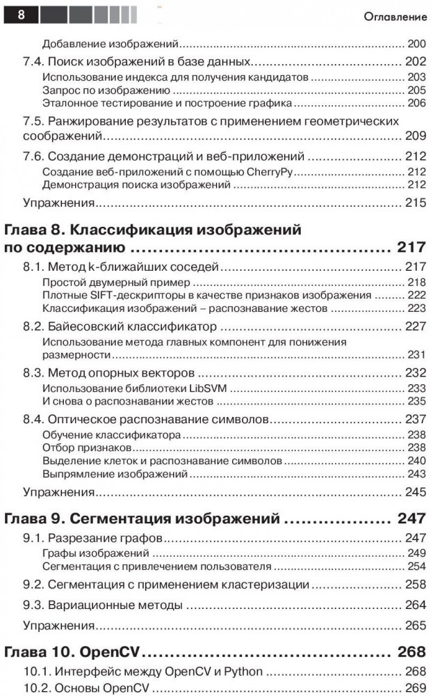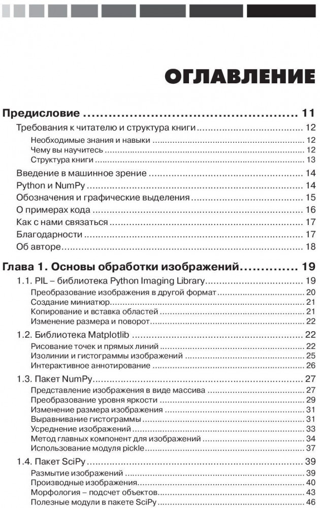 Программирование компьютерного зрения на языке PythonВ данный момент этот товар отсутствует в продаже. Возможно, у нас найдется аналогичный или похожий товар здесь. Если вы хотите разобраться в основах теории и алгоритмов компьютерного зрения, то эта книга — как раз то, что вам нужно. Вы узнаете о методах распознавания объектов, трехмерной реконструкции, обработке стереоизображений, дополненной реальности и других приложениях компьютерного зрения. Изложение сопровождается понятными примерами на языке Python. При этом объяснения даются в общих чертах, без погружения в сухую теорию. Издание идеально подходит для студентов, исследователей и энтузиастов-любителей с базовыми знаниями математики и навыками программирования. Краткое содержание книги: методы, применяемые для ориентации роботов, обработки медицинских изображений и в других приложениях машинного зрения; преобразования изображений, в частности деформирование текстур и создание панорам; вычисление трехмерной реконструкции по нескольким изображениям одной сцены; организация изображений по сходству или содержанию с применением методов кластеризации; разработка эффективных методов поиска изображений по содержанию; алгоритмы распознавания объектов и классификации изображений по содержанию; работа с популярной библиотекой OpenCV через интерфейс с Python. |