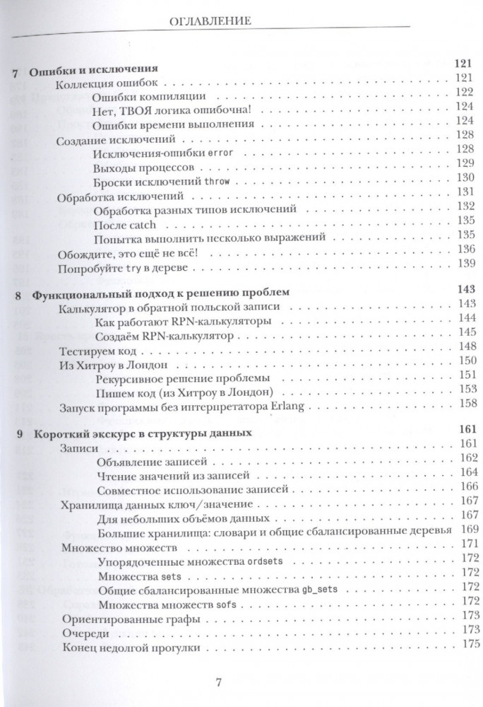 Маэстро Erlang, Фред Хеберт, начинает урок и без спешки поясняет основы языка: вы изучите необычный синтаксис Erlang, его структуры данных, его систему типов (вернее её отсутствие!), и основы техники функционального программирования. Как только вы разберётесь с простыми вещами, вы освоите настоящие полезные возможности языка: параллельное исполнение, распределённые вычисления, горячая перезагрузка кода и прочая тёмная магия, которая делает Erlang такой востребованной темой среди современных практичных программистов.