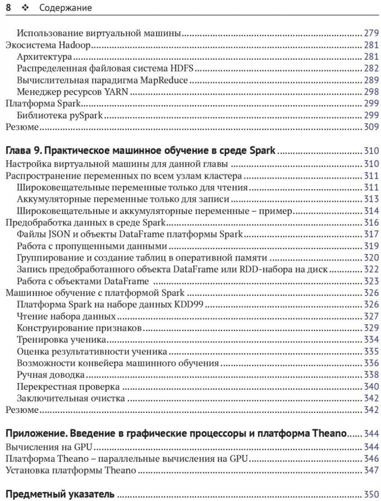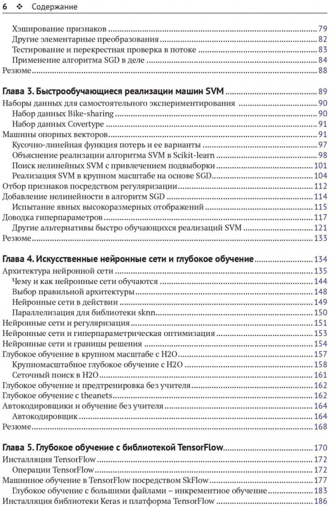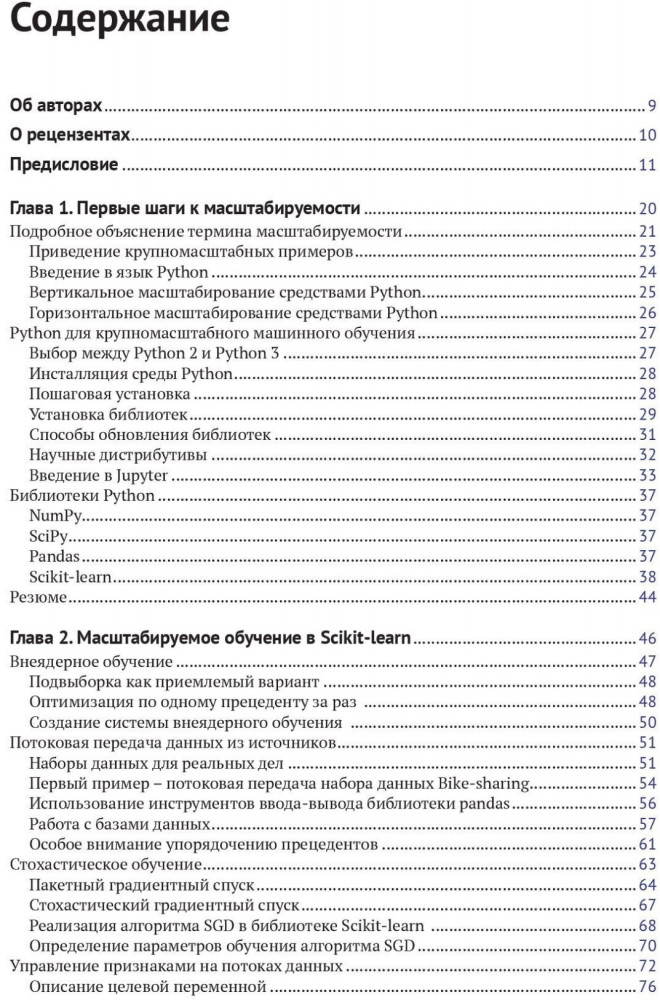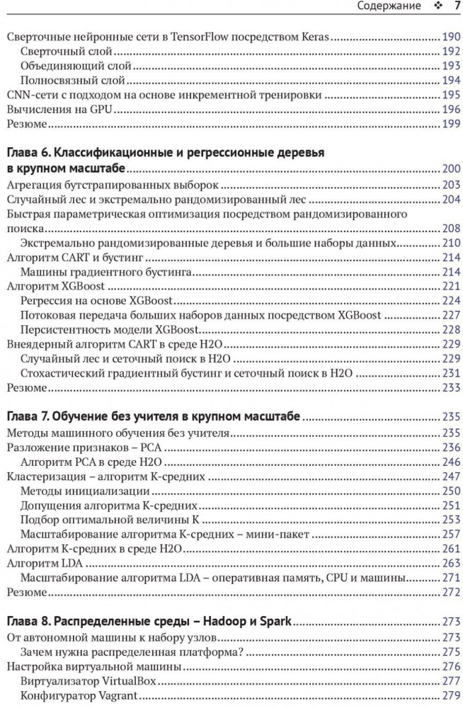 В данный момент этот товар отсутствует в продаже. Возможно, у нас найдется аналогичный или похожий товар здесь. С распространением больших данных растет спрос на вычислительную и алгоритмическую эффективность. Главная задача настоящей книги состоит в том, чтобы предоставить способы применения мощных методов машинного обучения с открытым исходным кодом в крупномасштабных проектах без привлечения дорогостоящих корпоративных решений или больших вычислительных кластеров. Описаны масштабируемое обучение в Scikit-learn, нейронные сети и глубокое обучение с использованием Theano, H2O и TensorFlow. Рассмотрены классификационные и регрессионные деревья, а также обучение без учителя. Охвачены эффективные методы машинного обучения в вычислительной среде MapReduce на платформах Hadoop и Spark на языке Python.