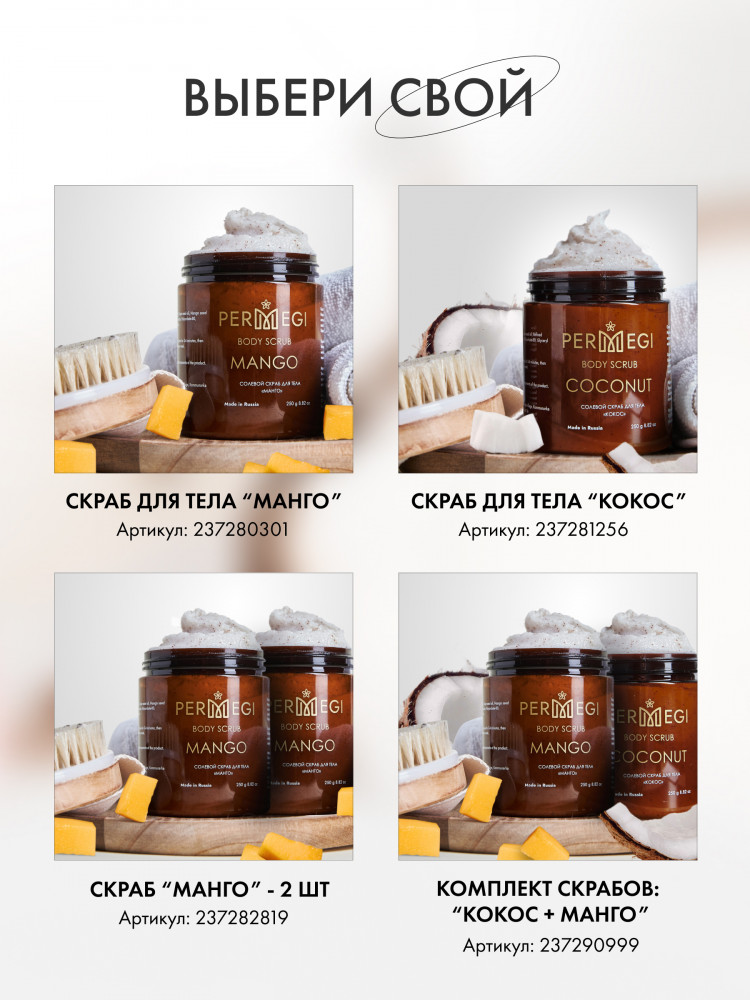 Permegi Набор скрабов для тела антицеллюлитных с маслами «Кокос»