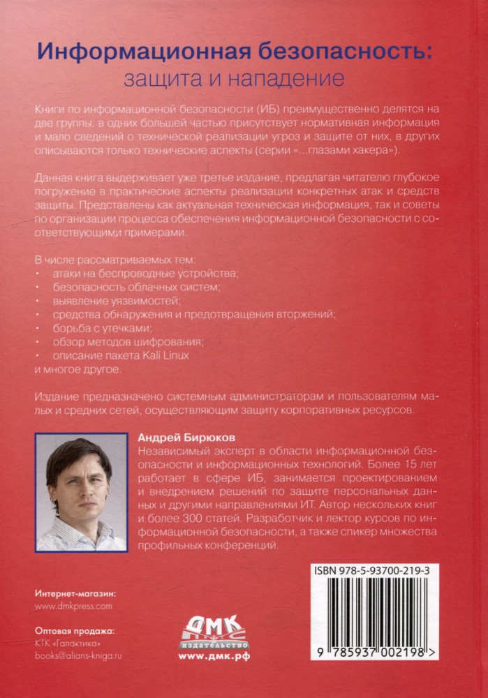 В данный момент этот товар отсутствует в продаже. Возможно, у нас найдется аналогичный или похожий товар здесь. Книги по информационной безопасности (ИБ) преимущественно делятся на две группы: в одних большей частью присутствует нормативная информация и мало сведений о технической реализации угроз и защите от них, в других описываются только технические аспекты (серии «...глазами хакера»).