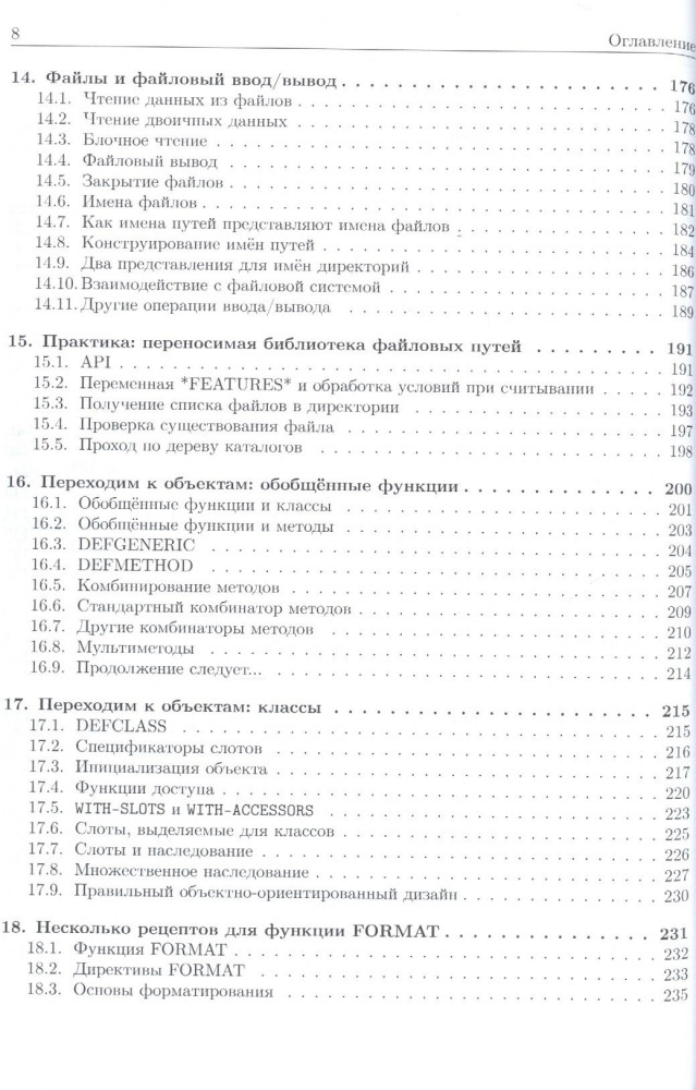 Практическое использование Common LispВ данный момент этот товар отсутствует в продаже. Возможно, у нас найдется аналогичный или похожий товар здесь. В отличие от основной массы литературы про Lisp, эта книга не просто рассказывает о ряде возможностей языка, предоставляя читателю самостоятельно осваивать их на практике. Здесь будут описаны все функции языка, которые понадобятся вам для написания реальных программ. Более трети книги посвящено разработке нетривиальных программ — статистического фильтра для спама, библиотеки для разбора двоичных файлов и сервера для трансляции музыки в формате MP3 через сеть, включающего в себя базу данных (MP3-файлов) и веб-интерфейс. |