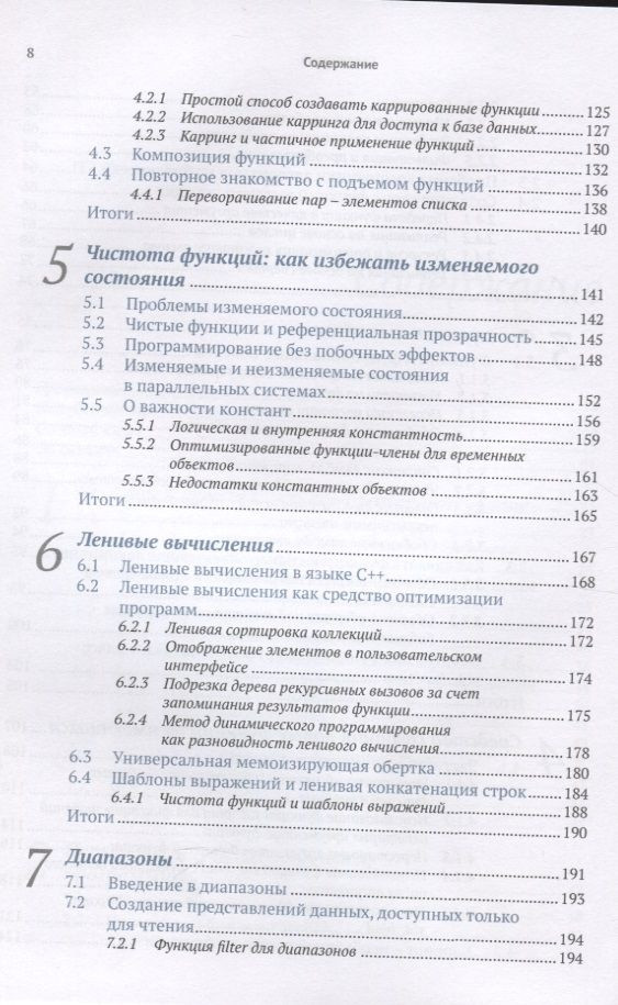 Функциональное программирование на C++В данный момент этот товар отсутствует в продаже. Возможно, у нас найдется аналогичный или похожий товар здесь. Хорошо написанный код легче тестировать и использовать повторно, его проще распараллелить, и он меньше подвержен ошибкам. Владение приемами функционального программирования поможет вам писать код, соответствующий требованиям к современным приложениям, проще выражать сложную логику программ, изящно обрабатывать ошибки и элегантно оформлять параллельные алгоритмы. Язык C++ поддерживает функциональное программирование с использованием шаблонов, лямбда-выражений и других своих базовых возможностей, а также алгоритмов из библиотеки STL. |