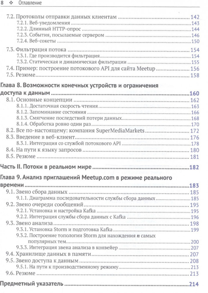 Потоковая обработка данных. Конвейер реального времениВ данный момент этот товар отсутствует в продаже. Возможно, у нас найдется аналогичный или похожий товар здесь. Эта насыщенная идеями книга научит вас думать об эффективном взаимодействии с быстрыми потоками данных. В ней выдержан идеальный баланс между широкой картиной и деталями реализации. На содержательных примерах и практических задачах вы узнаете о проектировании приложений, которые читают, анализируют, разделяют и сохраняют потоковые данные. Попутно вы поймете, какую роль играют такие технологии, как Spark, Storm, Kafka, Flink, RabbitMQ и другие. Издание ориентировано на разработчиков, знакомых с концепциями реляционных баз данных. |