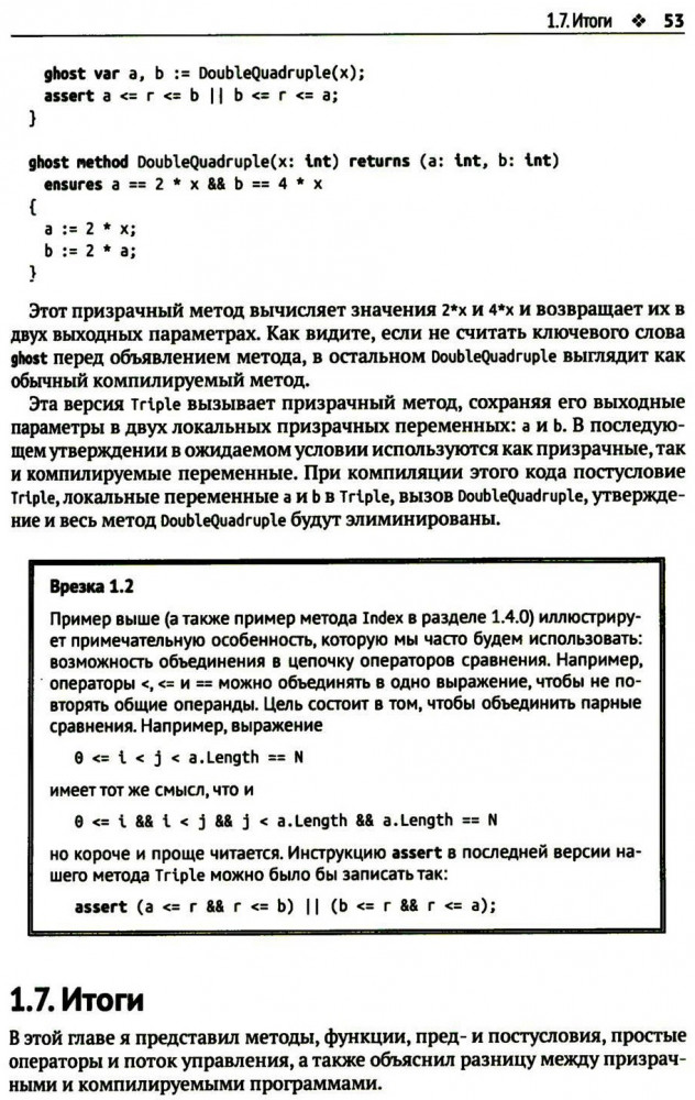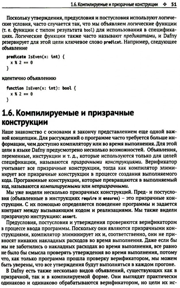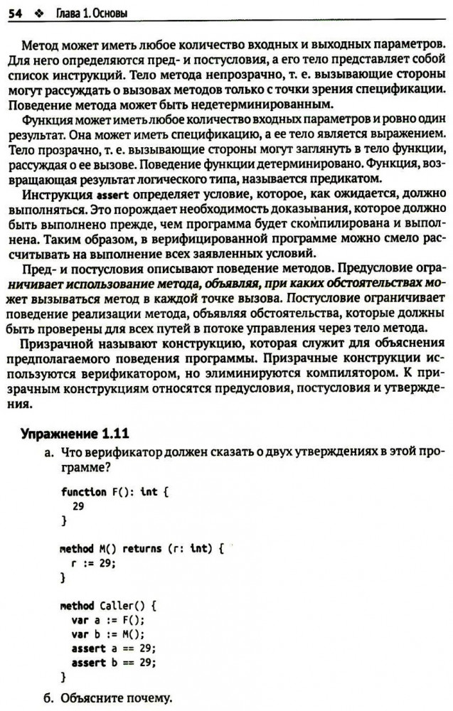 Доказательство корректности программВ данный момент этот товар отсутствует в продаже. Возможно, у нас найдется аналогичный или похожий товар здесь. Данная книга учит формально рассуждать о компьютерных программах, используя последовательный подход и язык программирования Dafny, поддерживающий верификацию. Показано, как писать спецификации для программ, как удовлетворить требования этих спецификаций и как писать доказательства корректности программ относительно спецификаций. Автор сначала представляет теоретические предпосылки, лежащие в основе рассуждений о программном коде, а затем постепенно переходит к реальным примерам, использующих объекты, структуры данных и нетривиальную рекурсию. |