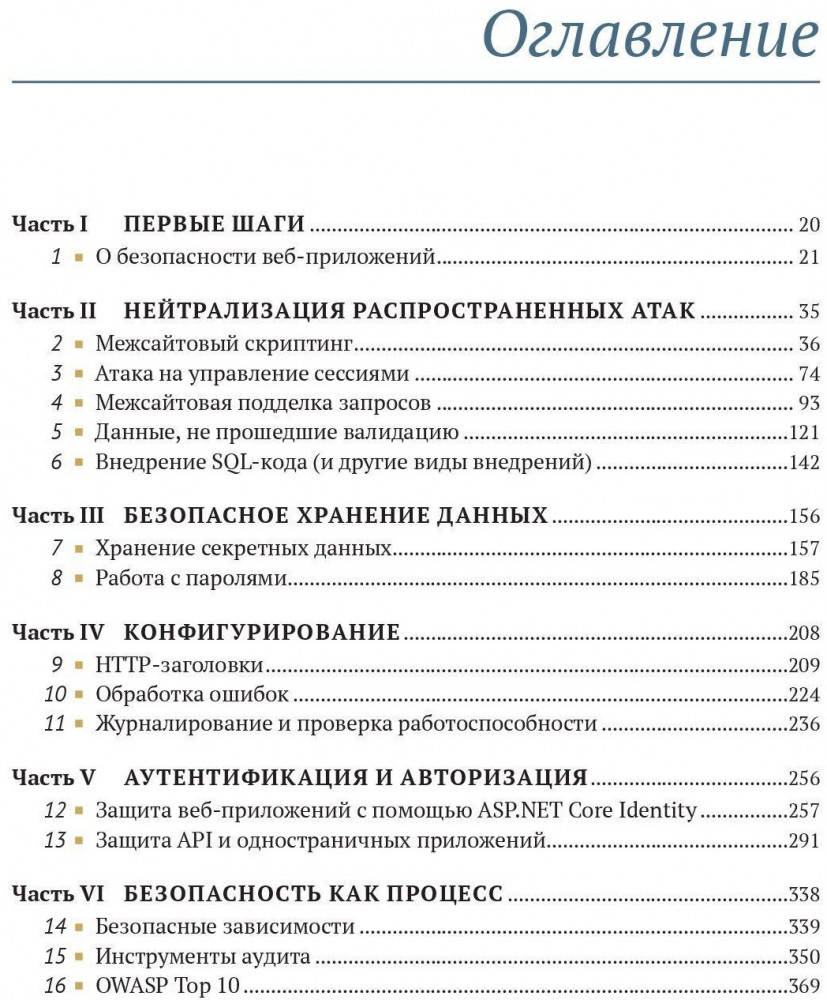 Безопасность ASP. Net CoreВ данный момент этот товар отсутствует в продаже. Возможно, у нас найдется аналогичный или похожий товар здесь. Приложения ASP.NET Core подвержены риску атак. Существуют конкретные меры, которые помогут избежать взлома. В книге показаны такие методы защиты веб-приложений ASP.NET Core, как безопасное взаимодействие с браузером, распознавание и предотвращение распространенных угроз, развертывание уникальных API безопасности этого фреймворка. Приводятся способы написания безопасного кода и примеры с аннотациями, а также полное описание встроенных инструментов безопасности ASP.NET Core. Рассматриваются реальные нарушения в системе безопасности, включая мошеннические расширения Firefox и кражу паролей в Adobe. |