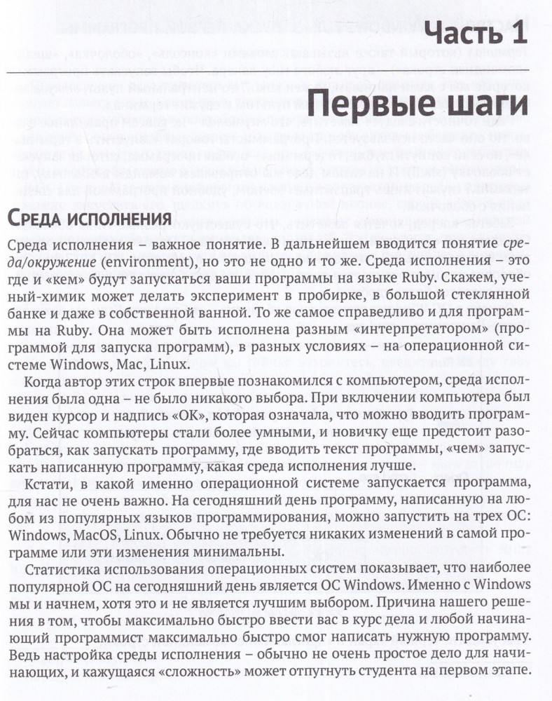 Ruby для романтиковВ данный момент этот товар отсутствует в продаже. Возможно, у нас найдется аналогичный или похожий товар здесь. Перед вами книга для самостоятельного знакомства с основами языка Ruby для начинающих разработчиков любого возраста. Последовательное изложение материала позволит не только освоить тонкости языка в удобной игровой форме, но и заложить твердый фундамент для дальнейшего обучения. Многочисленные советы, хитрости и приемы основаны на более чем двадцатилетнем опыте работы автора в российских и зарубежных компаниях — для многих учеников эта книга стала первым шагом на пути смены карьеры. Упражнения и задания, а также многочисленные иллюстрации помогут во всех тонкостях освоить материал. |