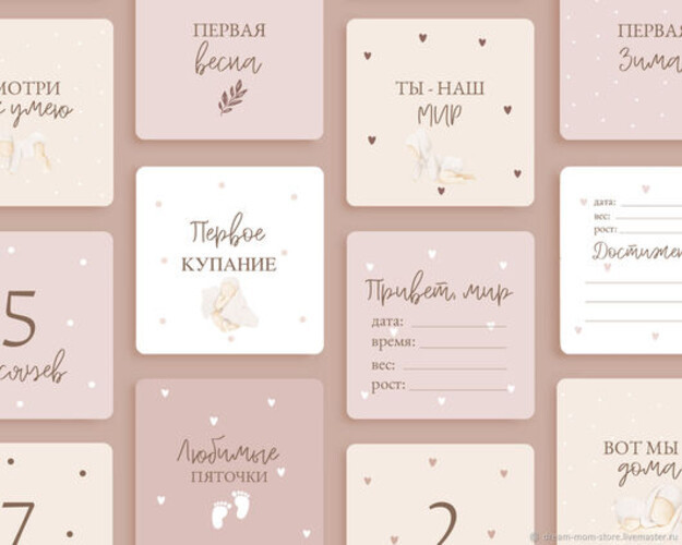 Набор карточек для фотосессии новорожденныхВ данный момент этот товар отсутствует в продаже. Возможно, у нас найдется аналогичный или похожий товар здесь. Набор из 25 карточек для новорожденных — это стильный и трогательный аксессуар, который поможет запечатлеть самые важные моменты первых месяцев жизни малыша. Карточки выполнены в нежных оттенках и имеют компактный размер 10×10 см, удобный для хранения и использования в фотосессиях. |