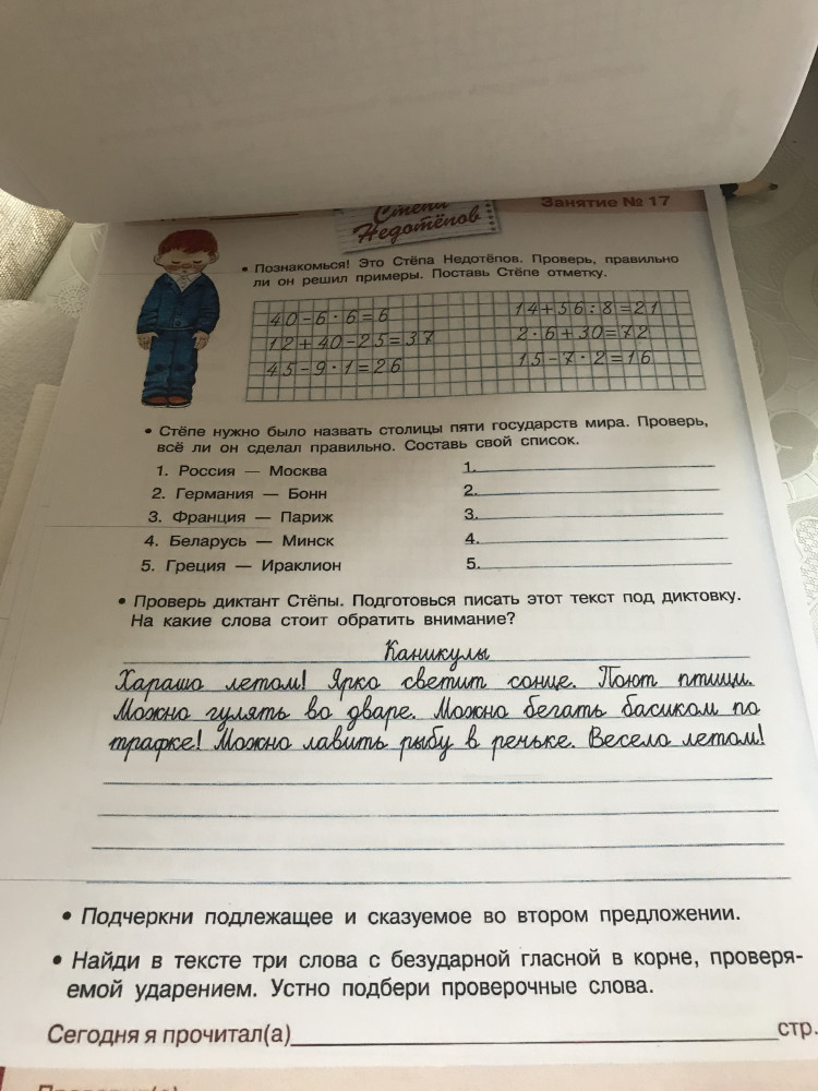 Была приятно удивлена заданиями. Классная книжка- яркая, с хорошим шрифтом, картинками, качество👌🏻Причем в одном уроке задания и с русского языка и с математики. Очень довольна.