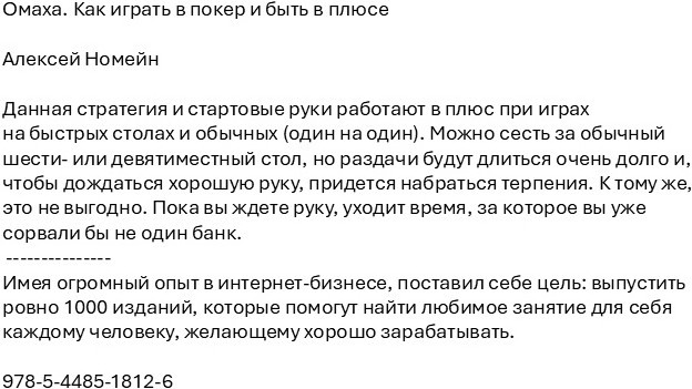 Как играть в покер и быть в плюсеВ данный момент этот товар отсутствует в продаже. Возможно, у нас найдется аналогичный или похожий товар здесь. Данная стратегия и стартовые руки работают в плюс при играх на быстрых столах и обычных (один на один). Можно сесть за обычный шести- или девятиместный стол, но раздачи будут длиться очень долго и, чтобы дождаться хорошую руку, придется набраться терпения. К тому же, это не выгодно. Пока вы ждете руку, уходит время, за которое вы уже сорвали бы не один банк. |
