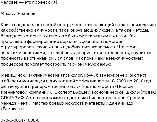 Человек — это профессия!В данный момент этот товар отсутствует в продаже. Возможно, у нас найдется аналогичный или похожий товар здесь. Книга представляет собой инструмент, позволяющий понять психологию, как собственной личности, так и окружающих людей, а также методы, благодаря которым вы сможете быть эффективным в жизни. |