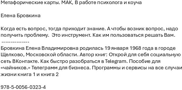Метафорические карты. МАК. В работе психолога и коучаВ данный момент этот товар отсутствует в продаже. Возможно, у нас найдется аналогичный или похожий товар здесь. Когда есть вопрос, тогда приходит знание. А чтобы возник вопрос, надо получить проблему. Это инструмент. Как им пользоваться решать Вам. |