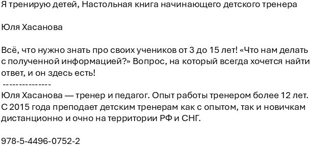 Я тренирую детей. Настольная книга начинающего детского тренераВ данный момент этот товар отсутствует в продаже. Возможно, у нас найдется аналогичный или похожий товар здесь. Всё, что нужно знать про своих учеников от 3 до 15 лет! «Что нам делать с полученной информацией?» Вопрос, на который всегда хочется найти ответ, и он здесь есть! |