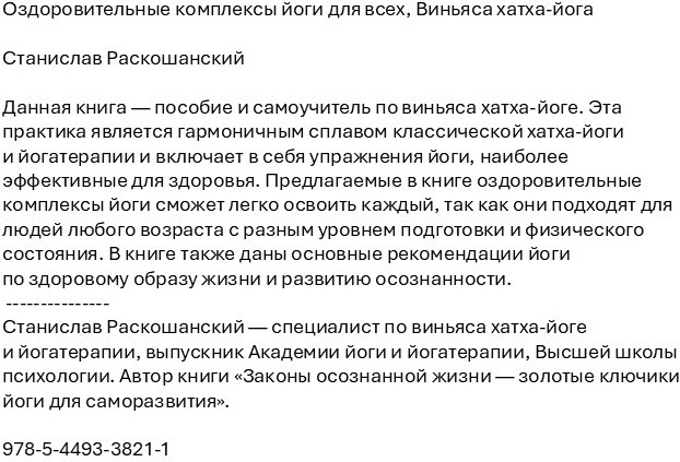| Станислав Раскошанский — специалист по виньяса хатха-йоге и йогатерапии, выпускник Академии йоги и йогатерапии, Высшей школы психологии. Автор книги «Оздоровительные комплексы йоги для всех». |
