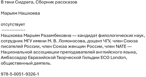 В тени Сидрата. Сборник рассказовВ данный момент этот товар отсутствует в продаже. Возможно, у нас найдется аналогичный или похожий товар здесь. В книге представлены пронзительные рассказы о людях, на долю которых выпала война в Чеченской Республике. Они никому не делали зла: мужчины, женщины, дети, старики — они, как все на земле, просто хотели жить, учиться, работать, влюбляться, растить детей и быть счастливыми. А теперь их мечтой стало остаться в живых, и чтобы были живы их близкие. Перед лицом войны представители всех национальностей сплотились, как один народ, ведь все мы сотворены Единым Всевышним для мира и созидания на земле. |