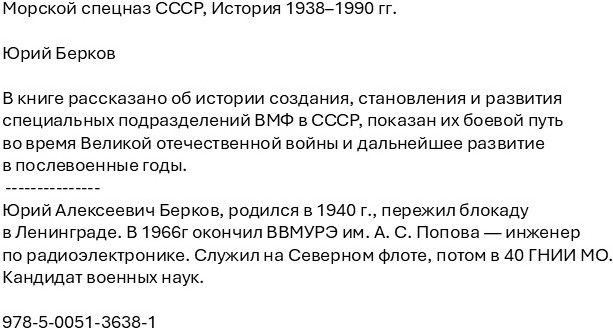 Морской спецназ СССР. История 1938-1990 гг.В данный момент этот товар отсутствует в продаже. Возможно, у нас найдется аналогичный или похожий товар здесь. В книге рассказано об истории создания, становления и развития специальных подразделений ВМФ в СССР, показан их боевой путь во время Великой Отечественной войны и дальнейшее развитие в послевоенные годы. |