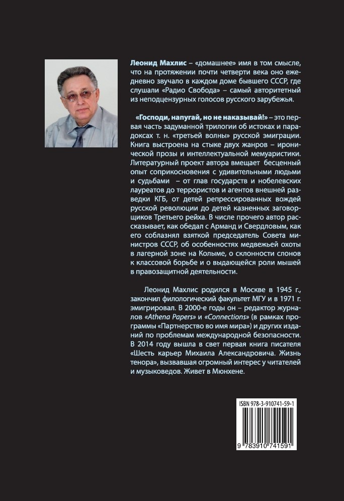 Господи, напугай, но не наказывай!В данный момент этот товар отсутствует в продаже. Возможно, у нас найдется аналогичный или похожий товар здесь. «Господи напугай но не наказывай!» — это первая часть задуманной трилогии об истоках и парадоксах т. н. «третьей волны» русской эмиграции. Книга выстроена на стыке двух жанров — иронической прозы и интеллектуальной мемуаристики. Литературный проект автора вмещает бесценный опыт соприкосновения с удивительными людьми и судьбами — от глав государств и нобелевских лауреатов до террористов и агентов внешней разведки КГБ от детей репрессированных вождей русской революции до детей казненных заговорщиков Третьего рейха. В числе прочего автор рассказывает как обедал с Арманд и Свердловым как его соблазнял взяткой председатель Совета министров СССР об особенностях медвежьей охоты в лагерной зоне на Колыме о склонности слонов к классовой борьбе и о выдающейся роли мышей в правозащитной деятельности. |