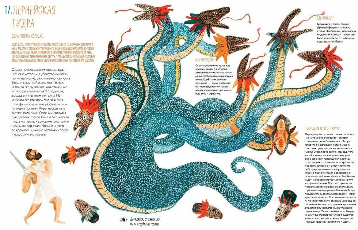 Многие чудища могут быть знакомы читателю по мифам, легендам и сказкам: с Лернейской гидрой и другими монстрами боролся Геракл, «Сказки 1000 и 1 ночи» описывают огромную птицу Рух, а сколько есть историй про драконов и единорогов! Но кроме встречи со старыми знакомыми, в этой книге вас ждет много нового и удивительного, ведь в ней собраны мифологические существа со всего света, а еще — новости науки о них. Хочешь узнать, как выглядит чупакабра, чем питается лохнесское чудовище, где обитает феникс, а также что думают о существовании необыкновенных созданий современные учёные? На каждого из чудищ автор книги Екатерина Степаненко собрала настоящее досье, а художник Поля Плавинская нарисовала их портреты, проиллюстрировала привычки и места обитания. Кроме того, на страницах читателей ждут интересные игры и задания, а карта мира в начале книги покажет, где обитают фантастические существа.
