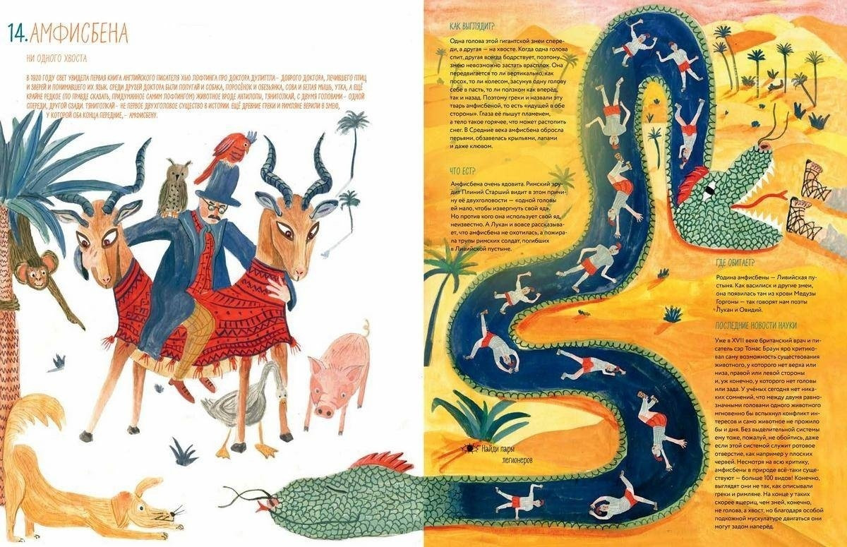 В данный момент этот товар отсутствует в продаже. Возможно, у нас найдется аналогичный или похожий товар здесь. Серия: Мировая история Кракен, кицунэ, амфисбена — кто они? Это названия удивительных и невероятных животных, в существование которых когда-то верили люди из разных стран и эпох. Об этих и других фантастических созданиях — единорогах, драконах, химерах — писали поэты, по описаниям очевидцев их рисовали художники. Знатоки не всегда сходились между собой в описании вида этих животных, их привычек и мест обитания, но точно были уверены, что такие твари есть на самом деле. Удивительно, что много веков назад в чудовищ верили не только простые люди, но и видные учёные! И только с развитием науки заблуждения рассеивались. Но на что только ни способна фантазия человека и его вера в чудеса!