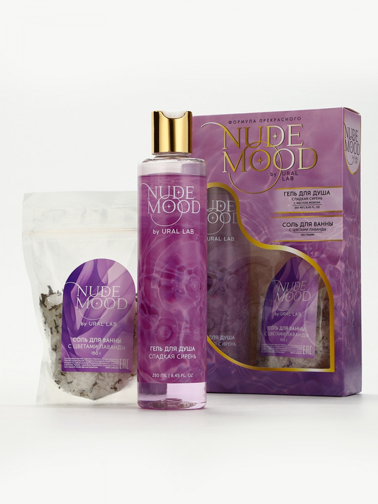 Ural lab Набор подарочный для женщин с ароматом сирени и лепестками лаванды «Гель для душа и соль для ванны»