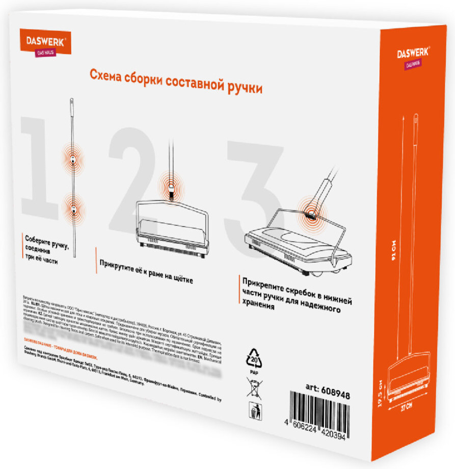 Механическая щётка DASWERK для пола и ковровых покрытий — это отличный помощник для уборки не только дома, но и небольшого офиса или магазина. Закажите её по приятной цене сейчас! |