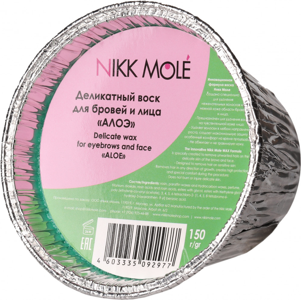 Обладает нежной текстурой, легко застывает и захватывает короткие волоски на неровных поверхностях. Комфортен в использовании, позволяет избежать ожогов, гипоаллергенный. Не оставляет следов, идеально подходит для чувствительной кожи. Воск идеально убирает пушок, не обламывая волосок, равномерно, тонко наносится, работает в любых направлениях. Среди всех процедур по оформлению бровей коррекция бровей воском занимает одно из лидирующих мест. Коррекция бровей воском эффективность подтверждена многолетней историей и множеством довольных женщин. Это неудивительно, ведь воск позволяет захватить даже тонкие прозрачные волоски, делая кожу по-настоящему гладкой и нежной. Кроме того, для коррекции бровей воском требуется минимум инструментов и времени. Инновационная формула воска для бровей и лица Никк Моле создана специально для ваксинга бровей при удаления нежелательных волосков на нежной коже области бровей и лица.