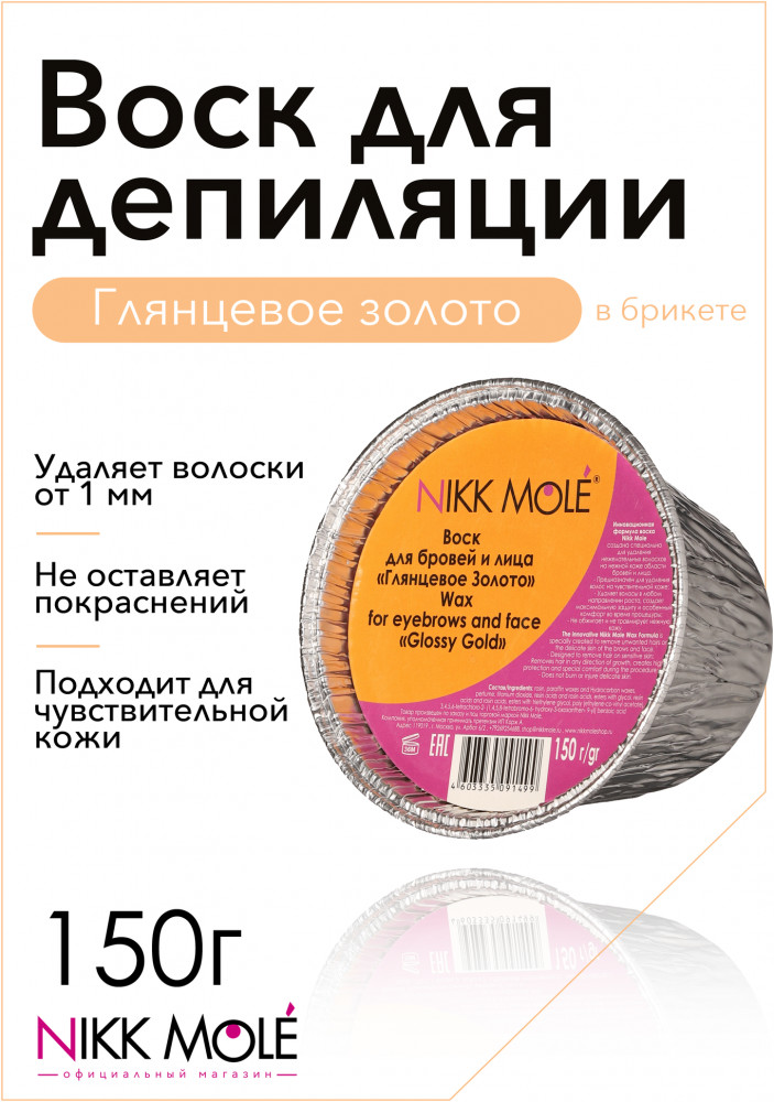 Обладает нежной текстурой, легко застывает и захватывает короткие волоски на неровных поверхностях. Комфортен в использовании, позволяет избежать ожогов, гипоаллергенный. Не оставляет следов, идеально подходит для чувствительной кожи. Воск идеально убирает пушок, не обламывая волосок, равномерно, тонко наносится, работает в любых направлениях. Среди всех процедур по оформлению бровей коррекция бровей воском занимает одно из лидирующих мест. Коррекция бровей воском эффективность подтверждена многолетней историей и множеством довольных женщин. Это неудивительно, ведь воск позволяет захватить даже тонкие прозрачные волоски, делая кожу по-настоящему гладкой и нежной. Кроме того, для коррекции бровей воском требуется минимум инструментов и времени. Инновационная формула воска для бровей и лица Никк Моле создана специально для ваксинга бровей при удаления нежелательных волосков на нежной коже области бровей и лица.