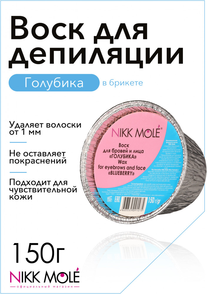 Обладает нежной текстурой, легко застывает и захватывает короткие волоски на неровных поверхностях. Комфортен в использовании, позволяет избежать ожогов, гипоаллергенный. Не оставляет следов, идеально подходит для чувствительной кожи. Воск идеально убирает пушок, не обламывая волосок, равномерно, тонко наносится, работает в любых направлениях. Среди всех процедур по оформлению бровей коррекция бровей воском занимает одно из лидирующих мест. Коррекция бровей воском эффективность подтверждена многолетней историей и множеством довольных женщин. Это неудивительно, ведь воск позволяет захватить даже тонкие прозрачные волоски, делая кожу по-настоящему гладкой и нежной. Кроме того, для коррекции бровей воском требуется минимум инструментов и времени. Инновационная формула воска для бровей и лица Никк Моле создана специально для ваксинга бровей при удаления нежелательных волосков на нежной коже области бровей и лица.