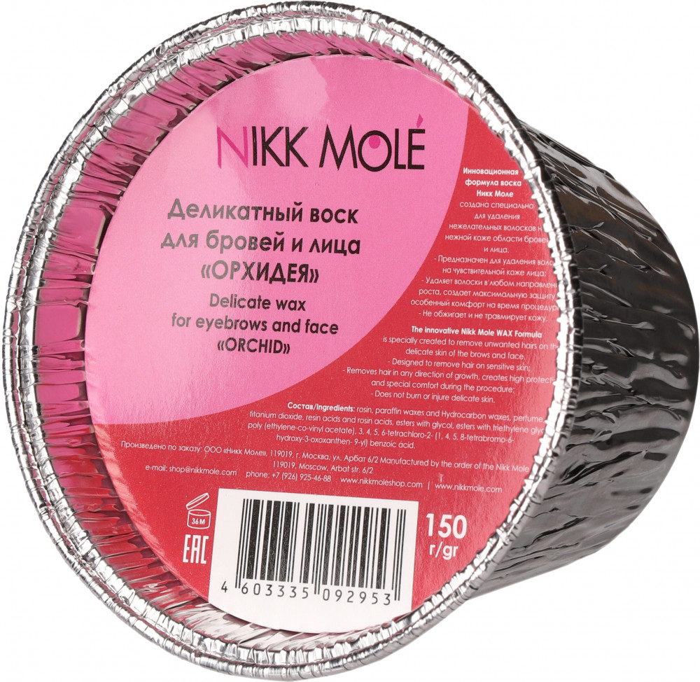 Обладает нежной текстурой, легко застывает и захватывает короткие волоски на неровных поверхностях. Комфортен в использовании, позволяет избежать ожогов, гипоаллергенный. Не оставляет следов, идеально подходит для чувствительной кожи. Воск идеально убирает пушок, не обламывая волосок, равномерно, тонко наносится, работает в любых направлениях. Среди всех процедур по оформлению бровей коррекция бровей воском занимает одно из лидирующих мест. Коррекция бровей воском эффективность подтверждена многолетней историей и множеством довольных женщин. Это неудивительно, ведь воск позволяет захватить даже тонкие прозрачные волоски, делая кожу по-настоящему гладкой и нежной. Кроме того, для коррекции бровей воском требуется минимум инструментов и времени. Инновационная формула воска для бровей и лица Никк Моле создана специально для ваксинга бровей при удаления нежелательных волосков на нежной коже области бровей и лица.