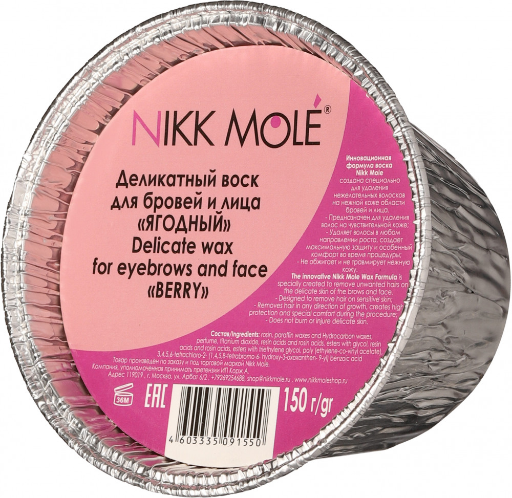 Обладает нежной текстурой, легко застывает и захватывает короткие волоски на неровных поверхностях. Комфортен в использовании, позволяет избежать ожогов, гипоаллергенный. Не оставляет следов, идеально подходит для чувствительной кожи. Воск идеально убирает пушок, не обламывая волосок, равномерно, тонко наносится, работает в любых направлениях. Среди всех процедур по оформлению бровей коррекция бровей воском занимает одно из лидирующих мест. Коррекция бровей воском эффективность подтверждена многолетней историей и множеством довольных женщин. Это неудивительно, ведь воск позволяет захватить даже тонкие прозрачные волоски, делая кожу по-настоящему гладкой и нежной. Кроме того, для коррекции бровей воском требуется минимум инструментов и времени. Инновационная формула воска для бровей и лица Никк Моле создана специально для ваксинга бровей при удаления нежелательных волосков на нежной коже области бровей и лица.