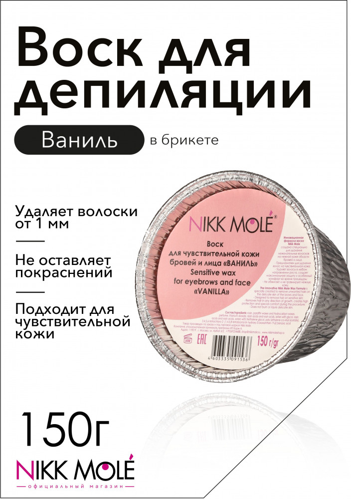 Обладает нежной текстурой, легко застывает и захватывает короткие волоски на неровных поверхностях. Комфортен в использовании, позволяет избежать ожогов, гипоаллергенный. Не оставляет следов, идеально подходит для чувствительной кожи. Воск идеально убирает пушок, не обламывая волосок, равномерно, тонко наносится, работает в любых направлениях. Среди всех процедур по оформлению бровей коррекция бровей воском занимает одно из лидирующих мест. Коррекция бровей воском эффективность подтверждена многолетней историей и множеством довольных женщин. Это неудивительно, ведь воск позволяет захватить даже тонкие прозрачные волоски, делая кожу по-настоящему гладкой и нежной. Кроме того, для коррекции бровей воском требуется минимум инструментов и времени. Инновационная формула воска для бровей и лица Никк Моле создана специально для ваксинга бровей при удаления нежелательных волосков на нежной коже области бровей и лица.
