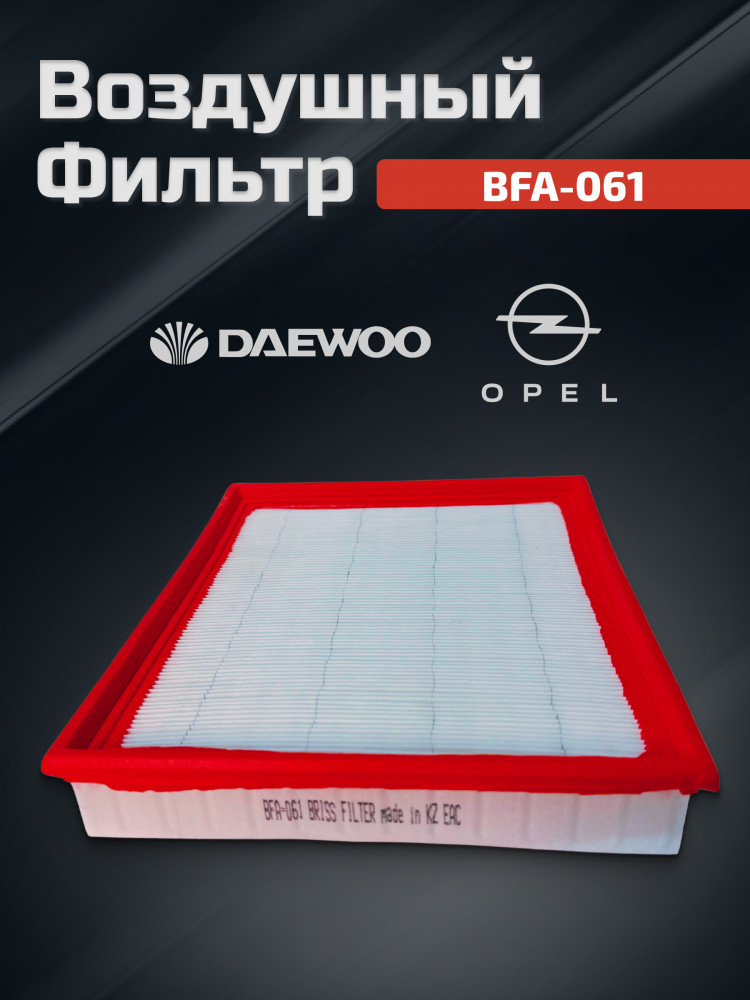 Воздушный фильтр BFA-061 предназначен для обеспечения чистого воздуха, поступающего в двигатель, что способствует его эффективной работе и продлевает срок службы. Он изготовлен из высококачественных материалов, обеспечивающих надежную фильтрацию и долговечность. Подходит для моделей автомобилей Daewoo и Opel, включая: Daewoo Nexia (с 2008 г.в. по настоящее время), Daewoo Espero (с 1991 г.в. по настоящее время), Opel Kadett (с 1984 г.в. по настоящее время).