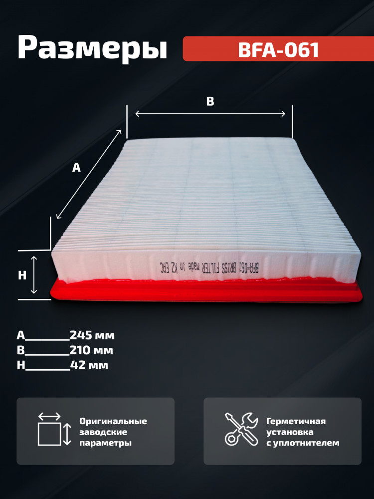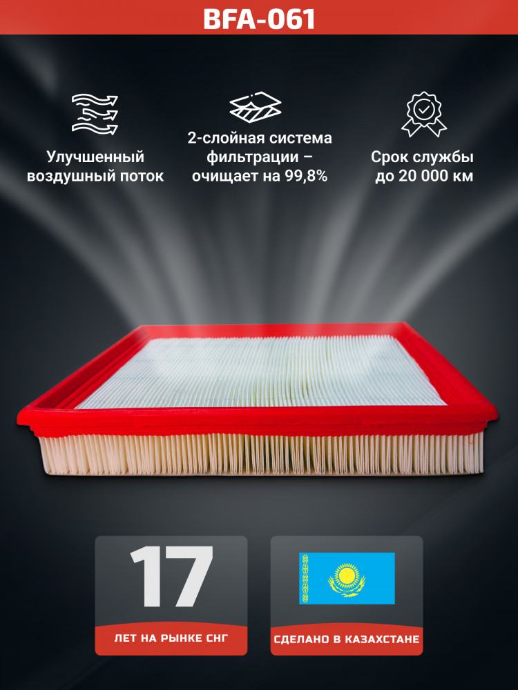 Регулярная замена воздушного фильтра BFA-061 обеспечивает оптимальную работу двигателя, улучшает топливную эффективность и снижает выбросы вредных веществ. Рекомендуется проверять состояние фильтра при каждом техническом обслуживании и заменять его в соответствии с рекомендациями производителя автомобиля.
