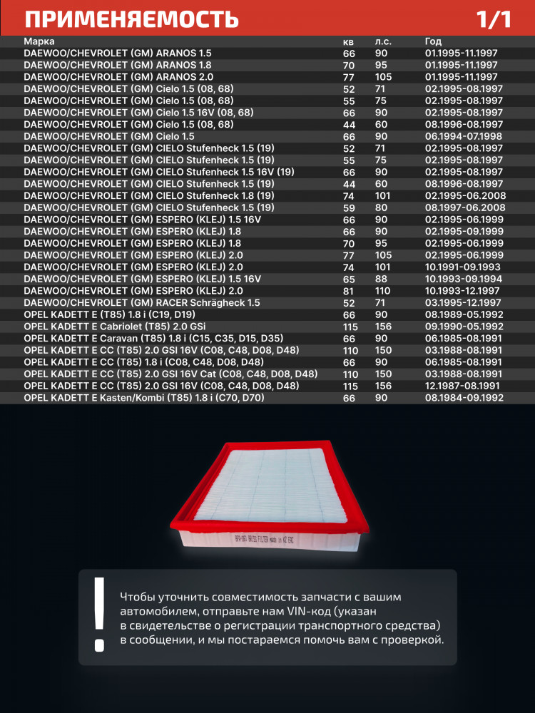 Для точного подбора фильтра убедитесь в совместимости с конкретной моделью и годом выпуска вашего автомобиля.