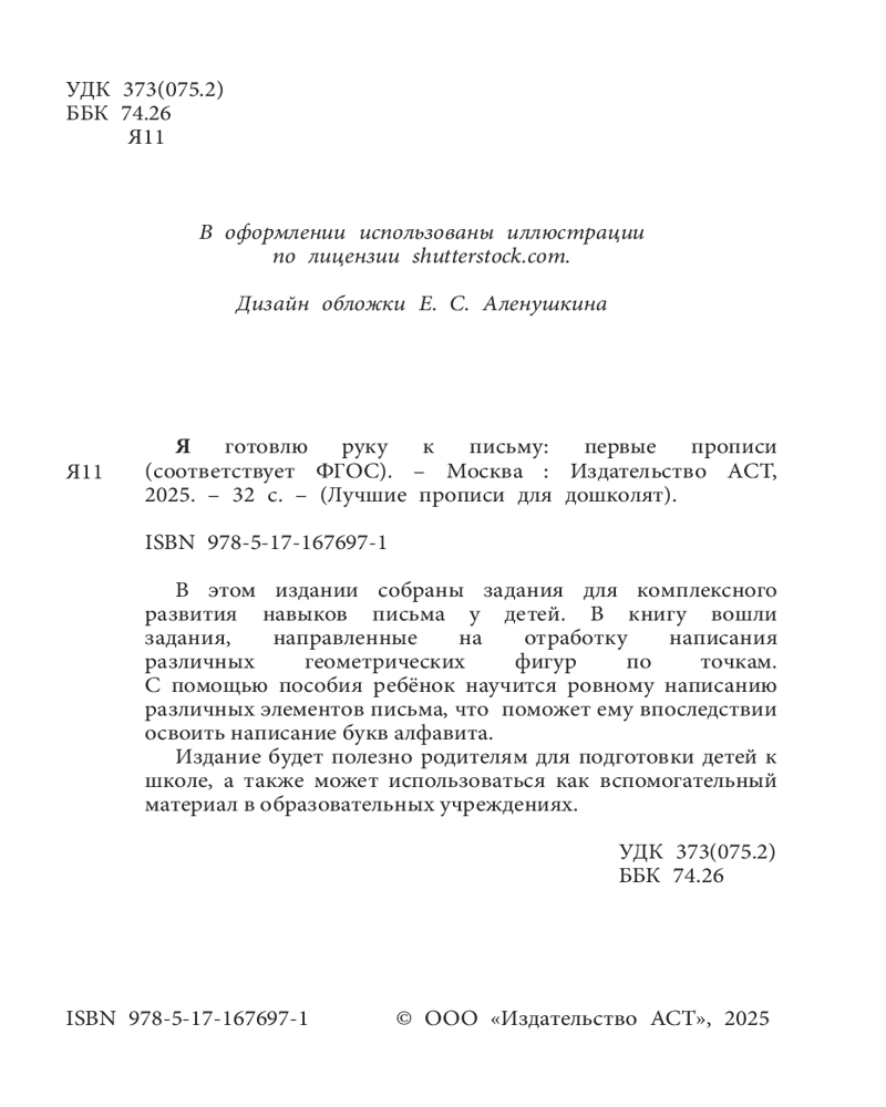 💳 Оплатить за товар можно при получении 🇰🇿 Есть бесплатная доставка по Казахстану от 1 дня 🎁 Копите бонусы с каждой покупки Серия: Лучшие прописи для дошколят В этом издании собраны задания для комплексного развития навыков письма у детей. В книгу вошли задания, направленные на отработку написания различных геометрических фигур по точкам. С помощью пособия ребёнок научится ровному написанию различных элементов письма, что поможет ему впоследствии освоить написание букв алфавита. Издание будет полезно родителям для подготовки детей к школе, а также может использоваться как вспомогательный материал в образовательных учреждениях. |