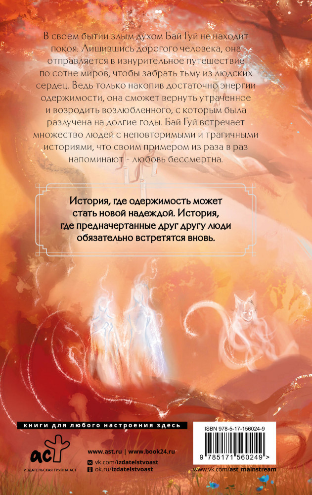 💳 Оплатить за товар можно при получении 🇰🇿 Есть бесплатная доставка по Казахстану от 1 дня 🎁 Копите бонусы с каждой покупки Серия: Хиты Китая. Фэнтези В своем бытии злым духом Бай Гуй не находит покоя. Лишившись дорогого человека, она отправляется в изнурительное путешествие по сотне миров, чтобы забрать тьму из людских сердец. Ведь только накопив достаточно энергии одержимости, она сможет вернуть утраченное и возродить возлюбленного, с которым была разлучена на долгие годы. Бай Гуй встречает множество людей с неповторимыми и трагичными историями, что своим примером из раза в раз напоминают — любовь бессмертна. История, где одержимость может стать новой надеждой. История, где предначертанные друг другу люди обязательно встретятся вновь. |