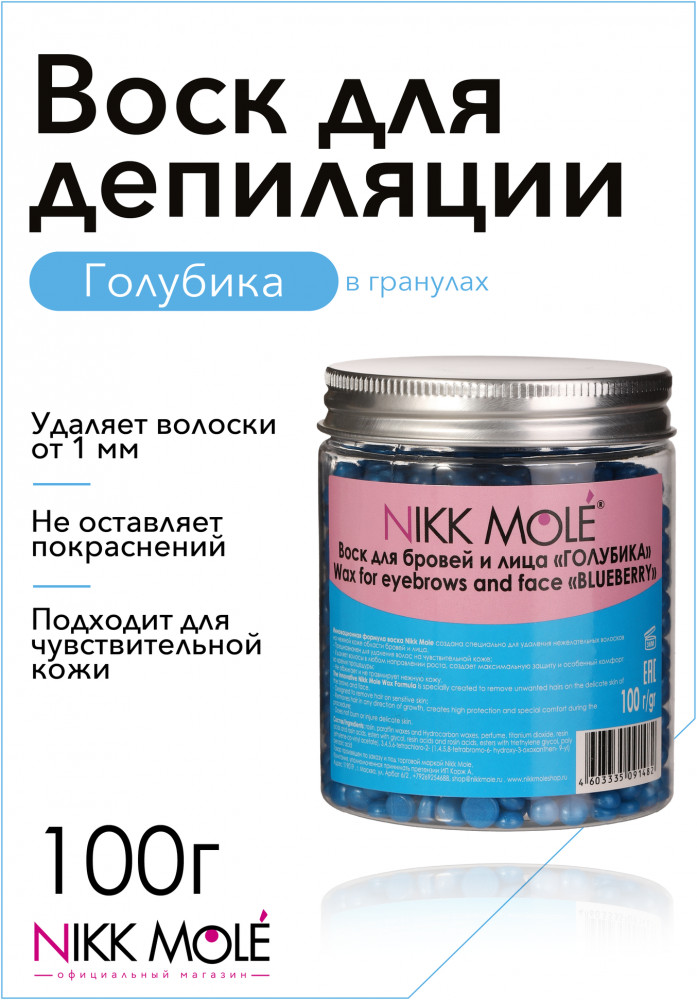 Воск для депиляции бровей и лица «Голубика» | Nikk Mole