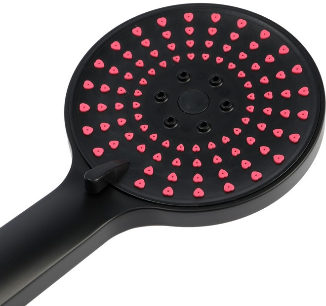 Душевая лейка Z3542 оборудована пятью режимами работы и уникальными розовыми форсунками в виде сердечек, добавляющими оригинальности. Кнопка «стоп» позволяет временно приостановить поток воды, а съемный верх облегчает чистку. Черный цвет придает лейке современный и стильный вид, идеально подходящий для любого интерьера ванной комнаты. |