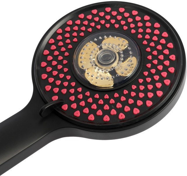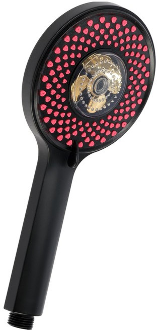 Душевая лейка Z3547 имеет три режима потока воды, обеспечивая разнообразие и комфорт во время душа. Уникальный дизайн включает вентилятор и розовые форсунки в виде сердечек, которые придают лейке оригинальный вид. Черное покрытие добавляет стильности и современности, идеально вписываясь в любой интерьер ванной комнаты. |