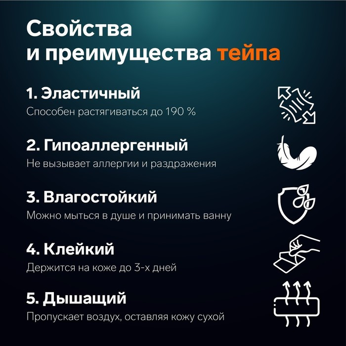 💳 Оплатить за товар можно при получении 🇰🇿 Есть бесплатная доставка по Казахстану от 1 дня 🎁 Копите бонусы с каждой покупки Тейп — это лента из акрила, хлопка и клея, плотная по текстуре, обладающая достаточной растяжимостью, схожей с естественной эластичностью человеческой кожи. На внутреннюю сторону тейпа нанесен клеевой состав, который и фиксирует ленту на коже. Этот состав сам по себе не содержит никаких лекарственных или обезболивающих компонентов — действие тейпа осуществляется за счет стимуляции лимфотока, что способствует естественным восстановительным процессам, снимая боль и перенапряжение в мышцах, а также ускоряя восстановление мышечных волокон. |