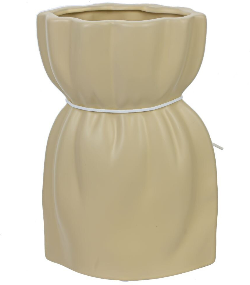 Эта стильная ваза выполнена из качественного материала, который придаёт ей элегантность и универсальность. Благодаря своему нейтральному оттенку, она легко вписывается в любой интерьер, будь то современный или классический. Идеальный выбор для тех, кто хочет добавить нотку изысканности в своё пространство, эта ваза отлично подходит для композиции как с живыми, так и с искусственными цветами. Ваза может служить не только функциональным предметом, но и настоящим украшением вашего дома. |