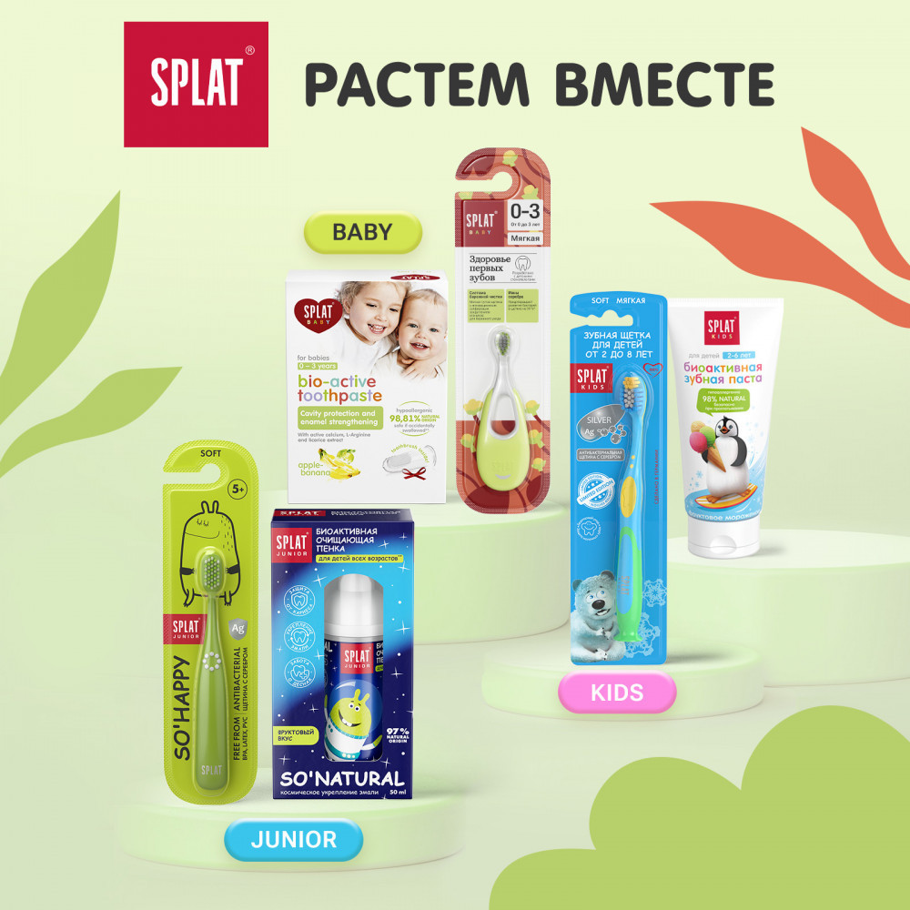 Splat Инновационная зубная щетка для детей с ионами серебра-20% +35 мягкая щетина удобная ручка эффективная чистка