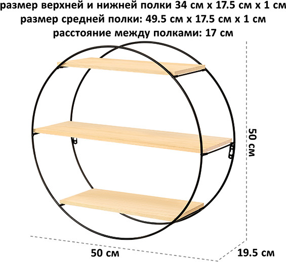 Elan Gallery Стеллаж подвесной «Чёрная»В данный момент этот товар отсутствует в продаже. Возможно, у нас найдется аналогичный или похожий товар здесь. Подвесная трёхъярусная полка выполнена из дерева и металла. Размер — 50×19.5×50 см. Размер верхней и нижней полки — 34×17.5×1 см, средней — 49.5×17.5×1 см. Расстояние между полками — 17 см. Металлический держатель чёрного цвета имеет круглую форму, что придаёт изделию оригинальности, несмотря на минималистичный дизайн. Настенная полочка украсит интерьер вашей прихожей, кухни или коридора и поможет держать под рукой всё необходимое. На железном каркасе есть отверстия для подвешивания. Узкую полку с 3-мя деревянными ярусами можно повесить в квартире, на даче, в гараже или офисе для хранения разных вещей и создания уютной атмосферы. Компактную полочку можно разместить над любой мебелью, стиральной машиной или под зеркалом в гостиной, чтобы эффективно использовать каждый сантиметр пространства и организовать порядок. Используйте её для статуэток, украшений, рамок с фотографиями, ключей и предметов декора. |