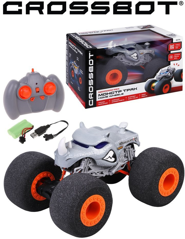 Crossbot Машина радиоуправляемая «Монстр носорог»В данный момент этот товар отсутствует в продаже. Возможно, у нас найдется аналогичный или похожий товар здесь. Радиоуправляемая модель «Монстр» с супермягкими защитными колесами — уникальная машина для дома! Игрушка безопасна для окружающих предметов, так как при столкновениях, падениях и трюках не повреждает мебель, стены и пол. При встрече с препятствием машина отталкивается от него мягкими колесами, не касаясь корпусом. Автомобиль отличается высокой мощностью и повышенной проходимостью, имеет полный привод (4×4). |