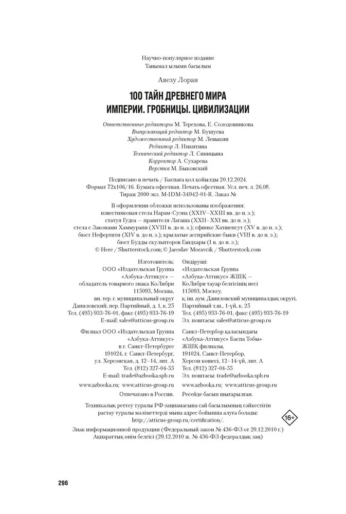 💳 Оплатить за товар можно при получении 🇰🇿 Есть бесплатная доставка по Казахстану от 1 дня 🎁 Копите бонусы с каждой покупки Серия: Исторический интерес Величественные империи, загадочные пирамиды, таинственные культы и захватывающие сражения — Древний мир по праву считается ярчайшей эпохой в истории. Именно тогда возникли цивилизации и культы, человек изобрел колесо и научился земледелию, а поэты создали первые эпосы о богах и героях. Французский историк Лоран Авезу предлагает нам окунуться в калейдоскоп 100 величайших загадок древнейшей истории на всех континентах мира. Почему на самом деле первыми цивилизациями управляли не люди, а боги? Что скрывает загадка Стоунхенджа? Как возникла легенда о воинственных ассирийцах? Кто создал величайший индийский эпос «Махабхарата»? На страницах этой книги вы встретите царя Мидаса и Конфуция, познакомитесь с правителями Вавилона и героями Троянской войны, исследуете мезоамериканскую цивилизацию ольмеков и города-государства шумеров. Полная интриг и загадок, эта эпоха великих свершений никого не оставит равнодушным. |