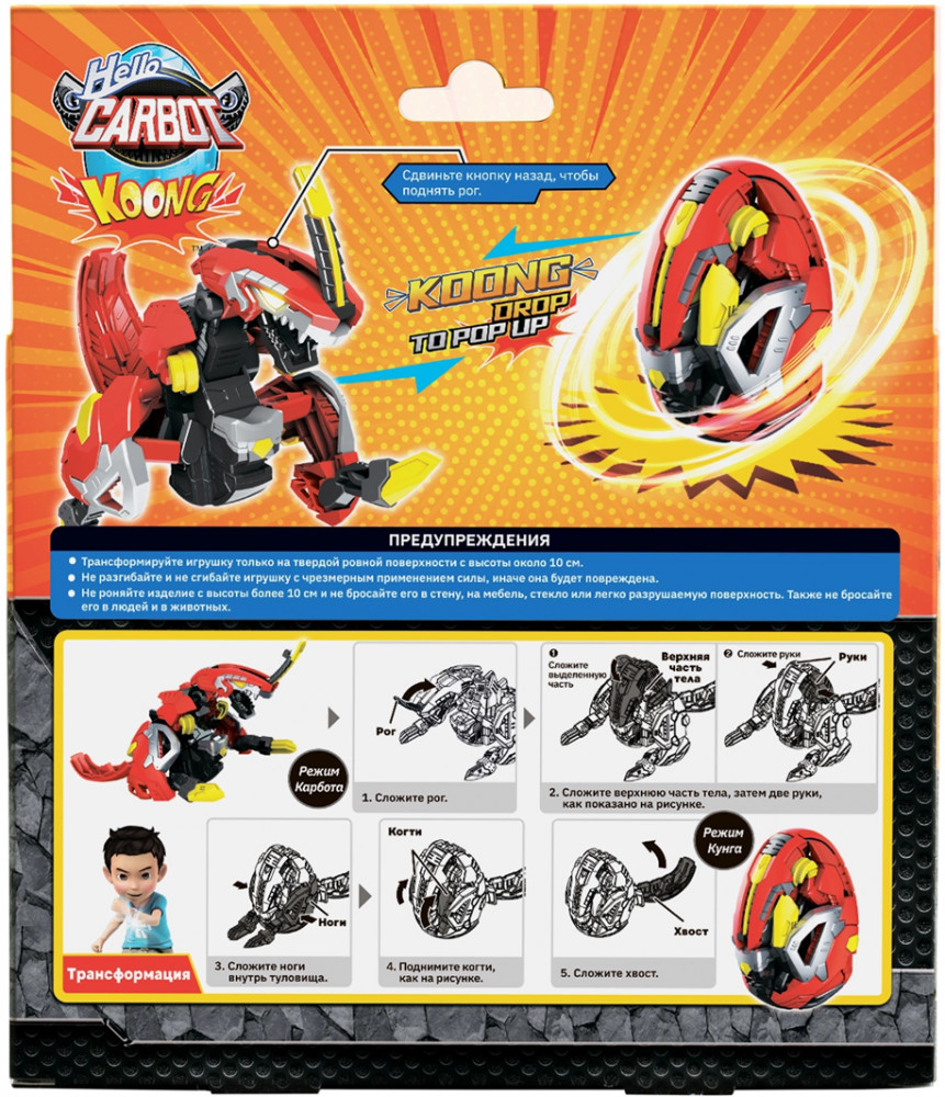 💳 Оплатить за товар можно при получении 🇰🇿 Есть бесплатная доставка по Казахстану от 1 дня 🎁 Копите бонусы с каждой покупки Доисторические Карботы Кунги ждут тебя, чтобы отправиться в приключение! Трансформируй малыша Тиракунга в робота-тираннозавра всего за одно действие — достаточно слегка бросить Кунга, и он раскроется! Активируй его боевой рог, потянув на себя встроенную серую кнопку на голове, и Тиракунг уже готов сражаться! |