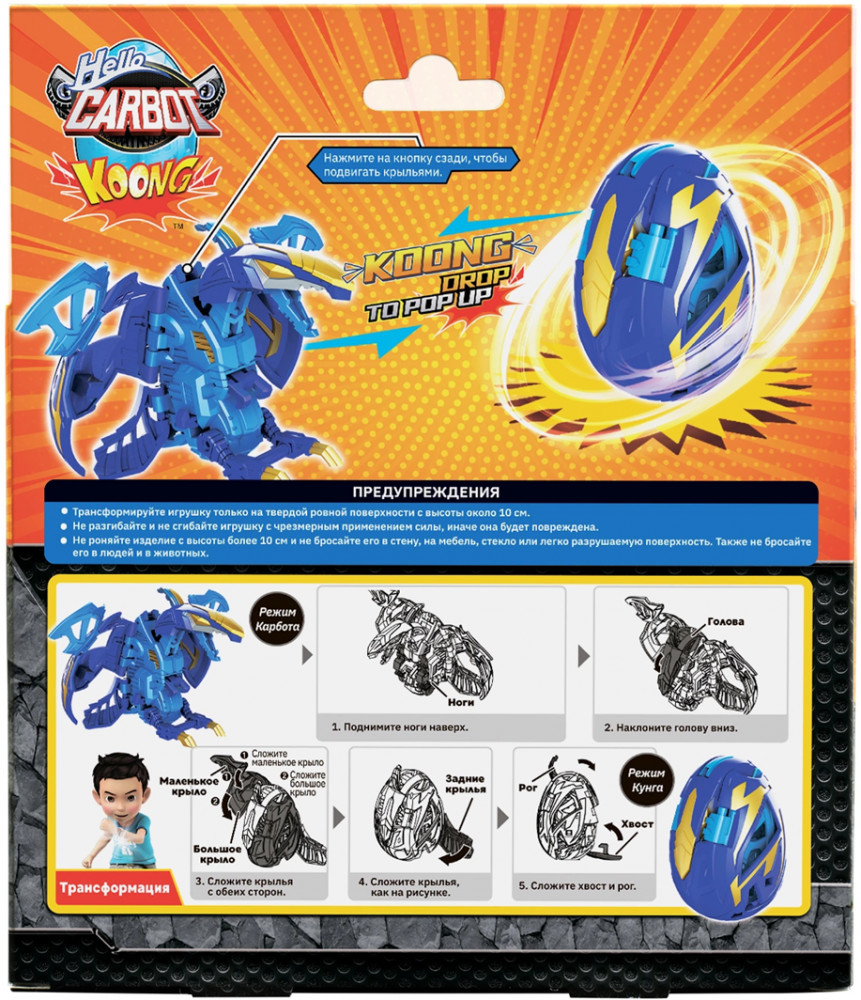 💳 Оплатить за товар можно при получении 🇰🇿 Есть бесплатная доставка по Казахстану от 1 дня 🎁 Копите бонусы с каждой покупки Доисторические Карботы Кунги ждут тебя, чтобы отправиться в приключение! Трансформируй малыша Птеракунга в робота-птеродактиля всего за одно действие — достаточно слегка бросить Кунга, и он раскроется! Активируй его мощные крылья нажатием на встроенную синюю кнопку на спине, и Птеракунг уже готов к полету! |