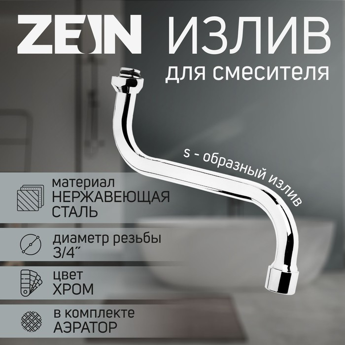 Zein Излив для смесителя S-образный с аэратором-25% +15