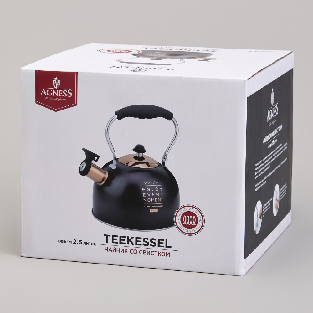 • благодаря внешнее жаропрочному покрытию и стильному дизайну чайник Agness украсит любую кухню;